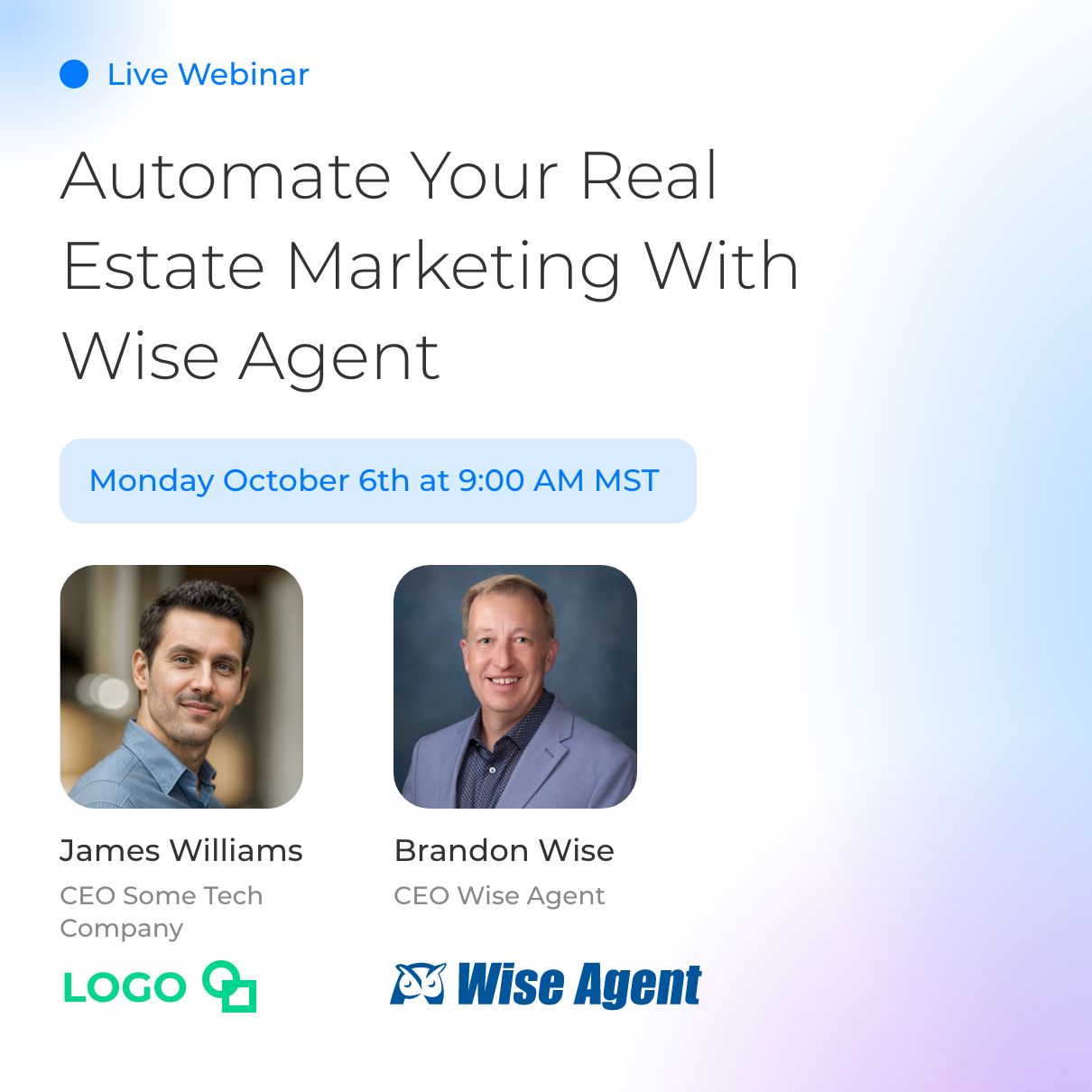 Use enhanced, realistic product imagery that replicate flows and aligns cleanly to edges. Imagery should pair naturally with Wise Agent gradients and brand colors.